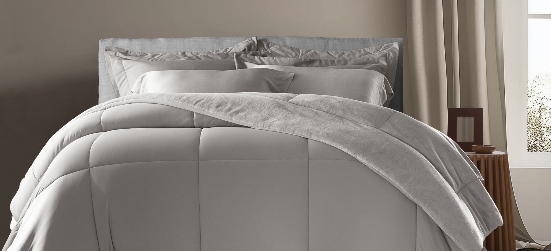 O Edredom Dual Sense acompanha todas as estações com equilíbrio perfeito. Um lado oferece sensação fresca e leve, ideal para noites mais quentes, enquanto o outro proporciona maciez acolhedora e calor suave nos dias frios. Versátil e elegante, adapta-se a cada preferência e transforma o descanso em uma experiência personalizada de conforto e bem-estar — faça frio ou calor.